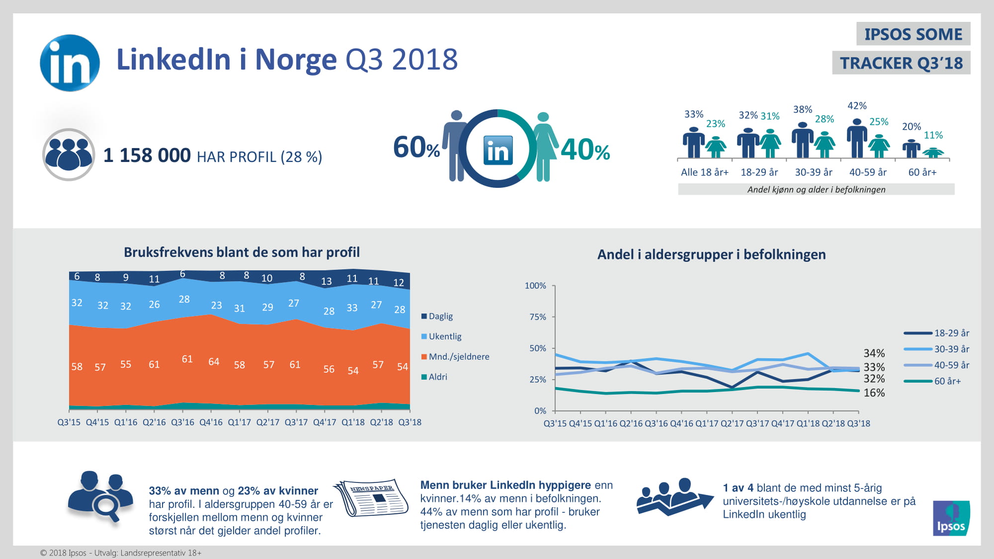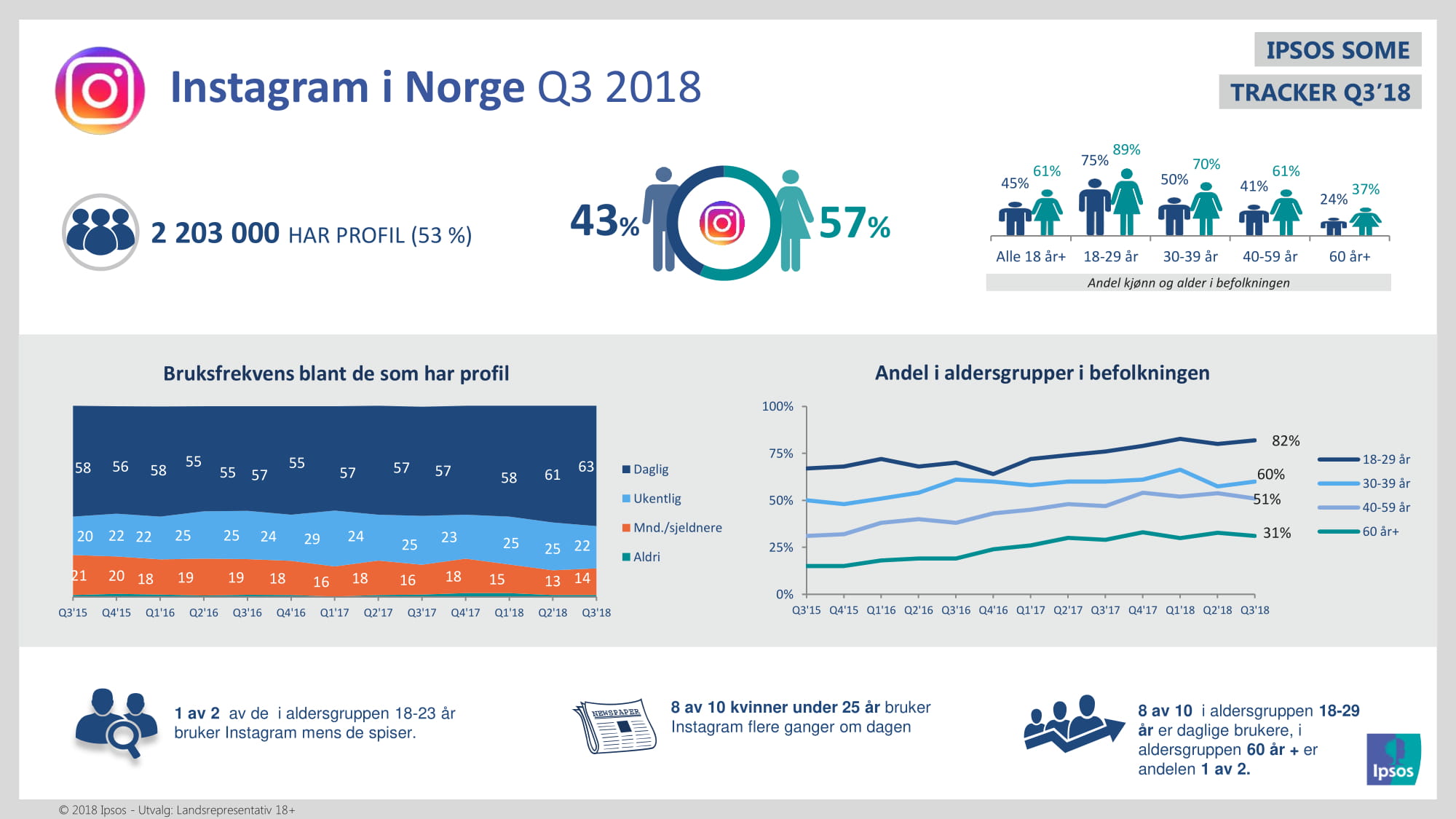 Oppdaterte tall for Facebook, Instagram, LinkedIn, Snapchat, Twitter, Pinterest og YouTube. Sjekk infographics for andel profiler, bruksfrekvens og utvikling